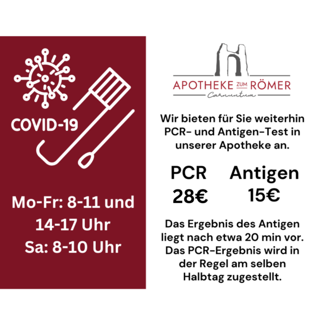 COVID-Testungen in unserer Apotheke AllgemeinVon wp-admin8. März 2022Wir führen in unserer Apotheke COVID-19 PCR- und Antigen-Testungen durch….